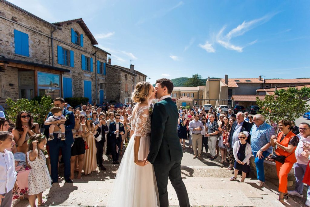 Allez, c’est parti ! Je vous embarque avec moi en Ardèche, pour le mariage de mes deux jeunes mariés. Direction le joli village de Satillieu pour un petit moment de détente avant le grand Oui devant Monsieur le maire. C’est un moment que j’affectionne particulièrement en tant que photographe de mariage. Passer quelques minutes avec les futurs époux pour les détendre et essayer de faire retomber la pression avant la mairie. Un moment où je peux aussi laisser s’exprimer mon côté artistique, mais pas que ! Parce qu’être photographe de mariage, en Ardèche et ailleurs, c’est capturer les émotions, saisir les moments forts de votre grand jour, capter tout cet amour qui vous entoure, mais aussi ces brins de folies qui vous caractérisent !