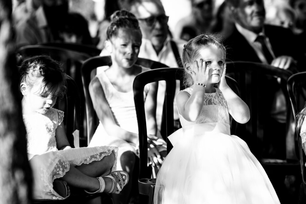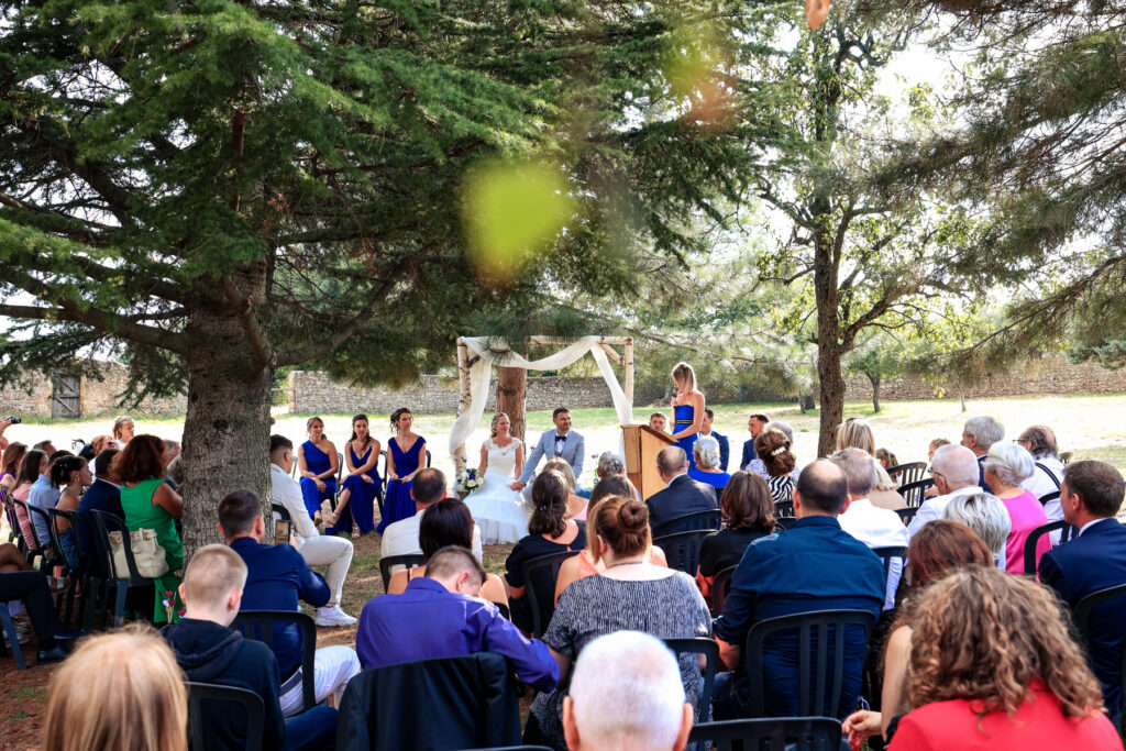 Plus un bruit, le silence… La mariée arrive et une cérémonie laïque démarre, pleine d’émotions, entremêlée de rires et de larmes, de petits bonheurs et de grandes joies. Mais, mais… C’est que vous m’avez fait pleurer, autant d’émotions que de rire! Même les yeux chargés, je ne perds tout de même pas une once de leur bonheur. Un cocktail détonnant, rempli d’amour et de surprises. Car oui, des surprises, il y en a eu! C’est bien pour ce genre d’instant plein d’émotions que j’aime être photographe de mariage au Domaine des Camiers ou ailleurs, et retranscrire votre histoire.