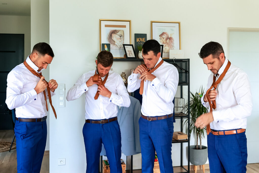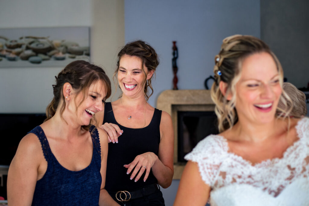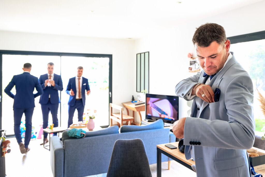 La journée commence avec les préparatifs de la mariée et du marié (et oui, les hommes aussi ont droit à leur moment de star attitude). Puis une découverte émouvante entre les deux futurs époux en toute intimité près de leur domicile. Que j’aime ce moment où la pression se relâche juste avant le grand Oui ! Ce moment d’intimité entre les mariés où le temps s’arrêtent quelques minutes pour savourer cet instant, le regard plongé l’un dans l’autre. Les invités arrivent doucement et découvrent le Domaine des Camiers.